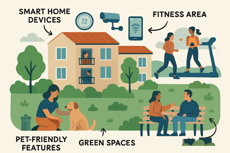As environmental concerns grow, renters increasingly favor communities that offer sustainability-focused features. Energy-efficient appliances, such as low-flow faucets and modern HVAC systems, reduce energy and water consumption without sacrificing performance. Comprehensive recycling and composting programs help residents minimize their environmental footprint, while on-site electric vehicle charging stations make green transportation easy for EV owners. Some developments even incorporate solar power, green roofs, or rainwater harvesting, demonstrating a long-term commitment to environmental responsibility. These eco-friendly upgrades not only appeal to residents who value environmentally responsible living but can also lower utility costs for the entire community.