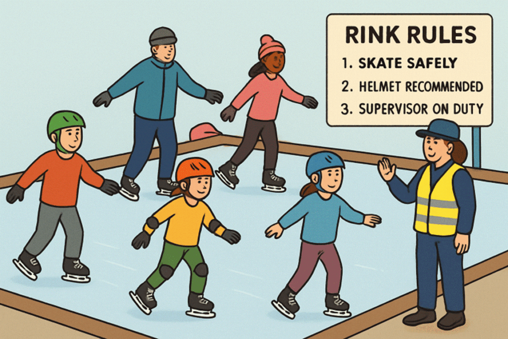 To further protect skaters—particularly children and novices—make helmets and padding (such as knee and elbow pads) available at the entrance to the rink. While older teens, adults, or seasoned skaters may choose not to wear protective gear, having it on hand demonstrates a proactive commitment to safety and injury prevention, reassuring families and event organizers alike.